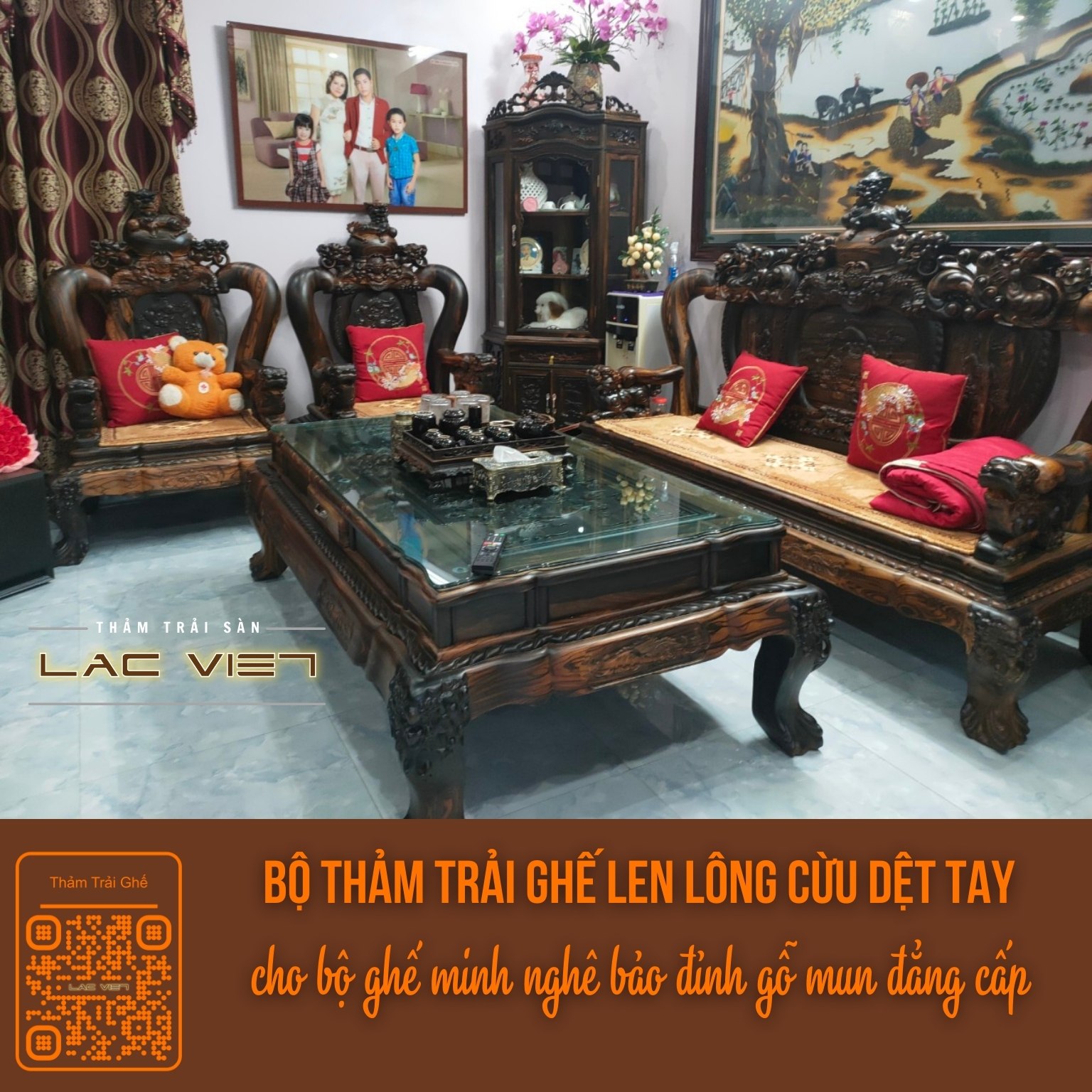 Thảm Len Dệt Thủ Công – Tinh Tế Tôn Vinh Bộ Ghế Minh Nghê Bảo Đỉnh