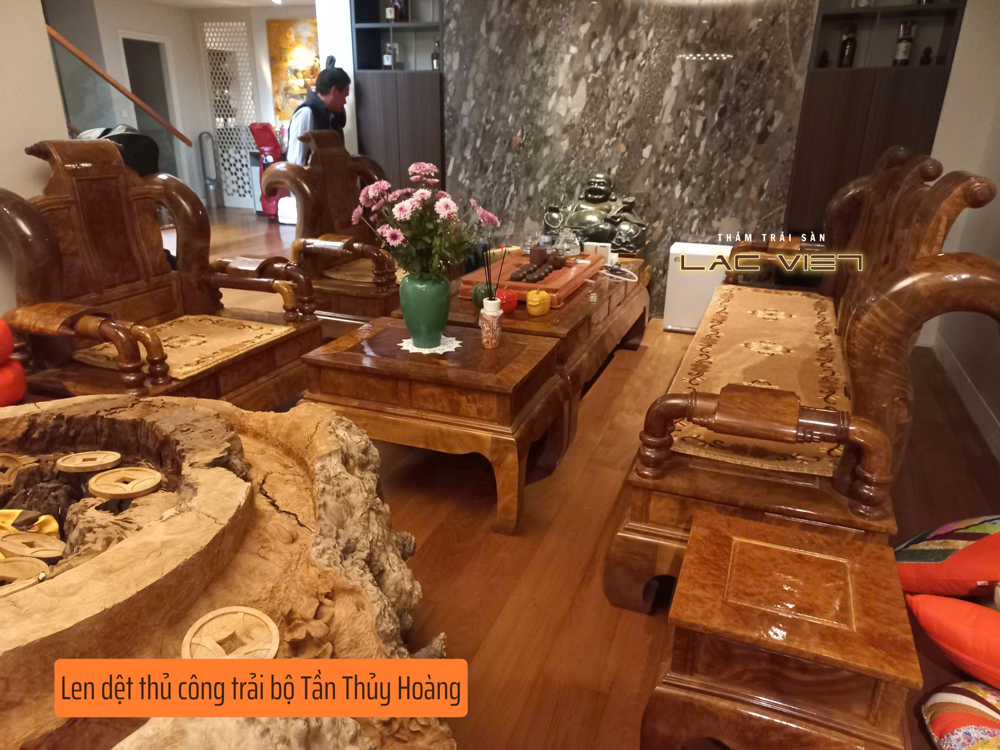 ✨ Tôn vinh giá trị nghệ thuật: Thảm được thiết kế riêng biệt, phù hợp với phong cách quyền uy và mạnh mẽ của bộ ghế Tần Thủy Hoàng.