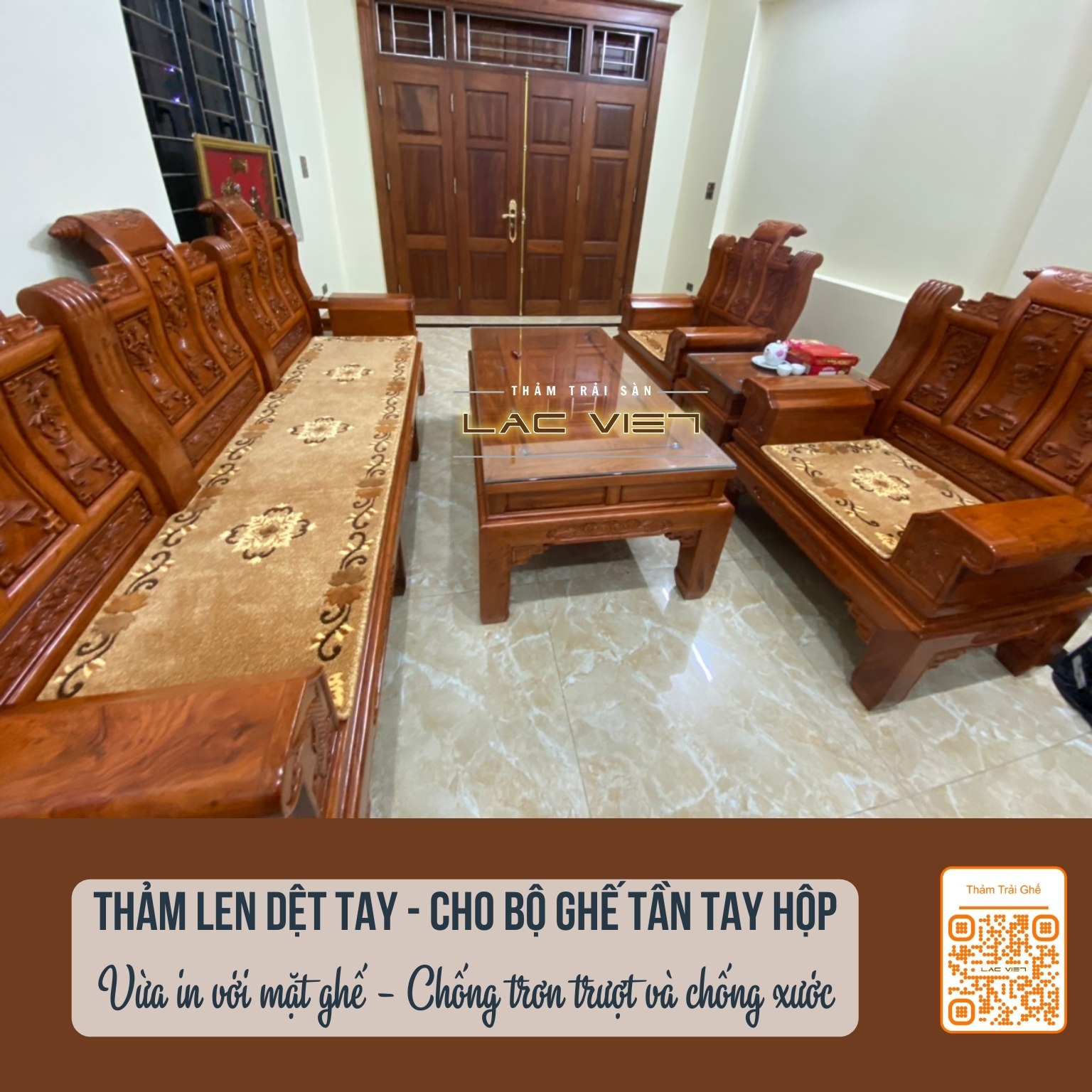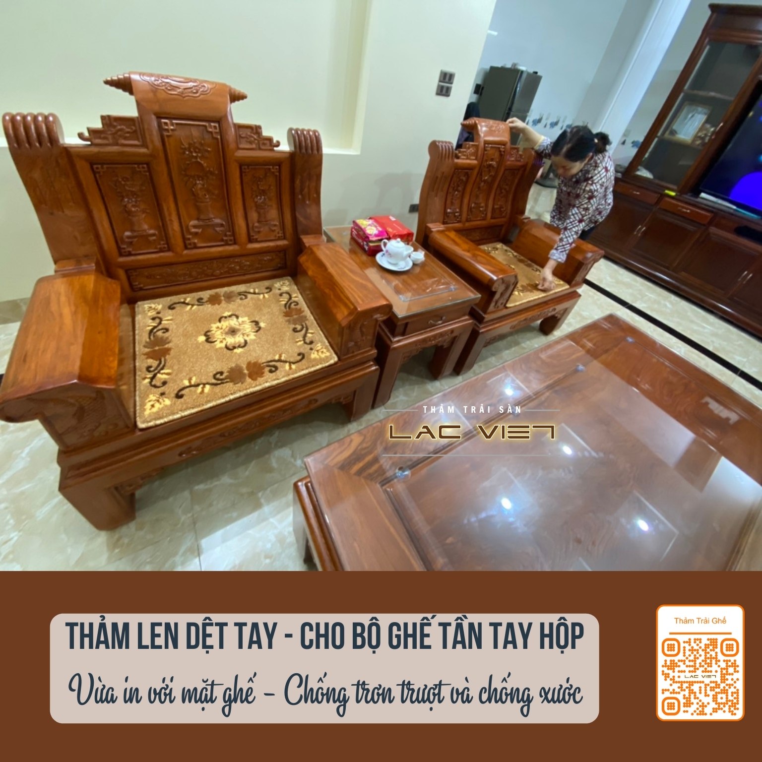 Lạc Việt giới thiệu dòng sản phẩm thảm trải ghế len dệt thủ công, được thiết kế đặc biệt cho các bộ ghế Âu Á, mang đến nét đẹp tinh tế và phong cách độc đáo cho không gian.