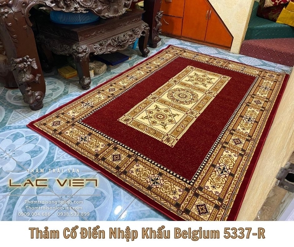 Phá cách hoa văn móc thường thấy, khách hàng có thể tham khảo mã thảm belgium 5337R hoặc 5337-BE với tông màu đỏ và vàng kết hợp