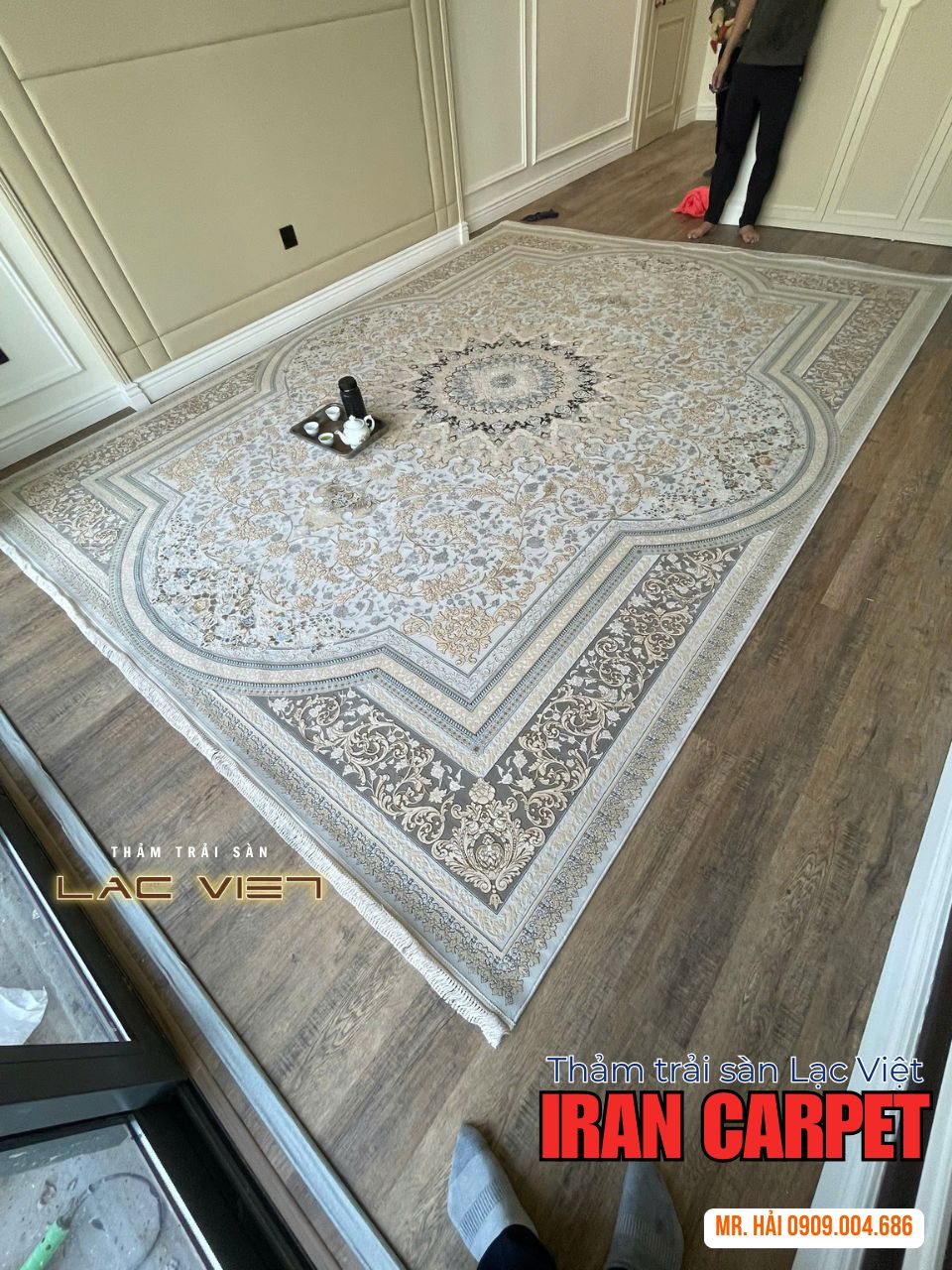 Một không gian đẳng cấp vừa được Thảm Trải Sàn Lạc Việt hoàn thiện bằng tấm thảm Ba Tư (Iran) cao cấp – sự hòa quyện giữa nét đẹp cổ điển và chất lượng vượt trội, mang đến điểm nhấn sang trọng cho cả căn phòng.