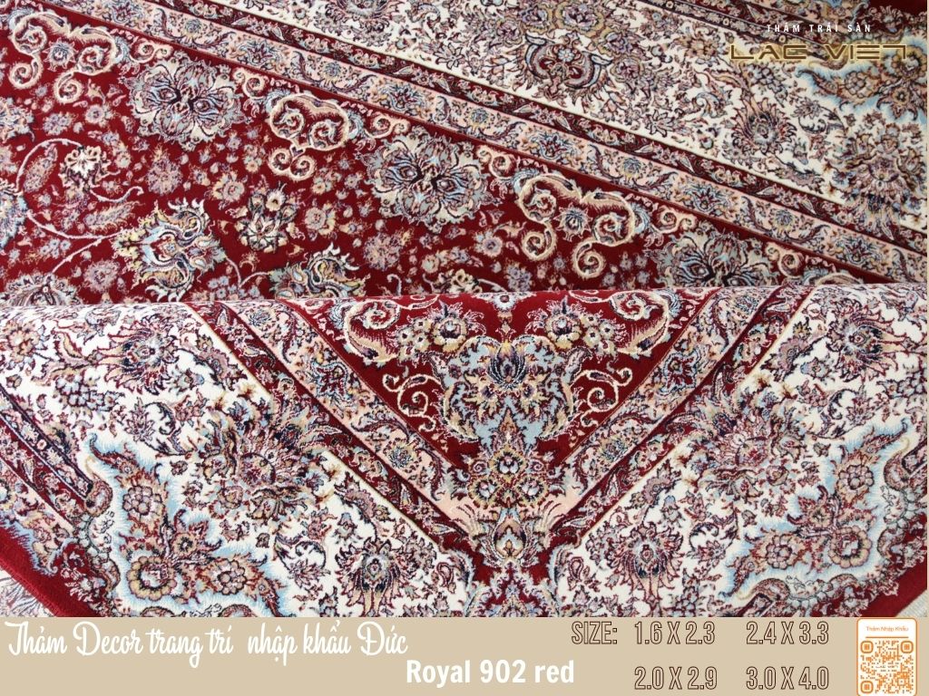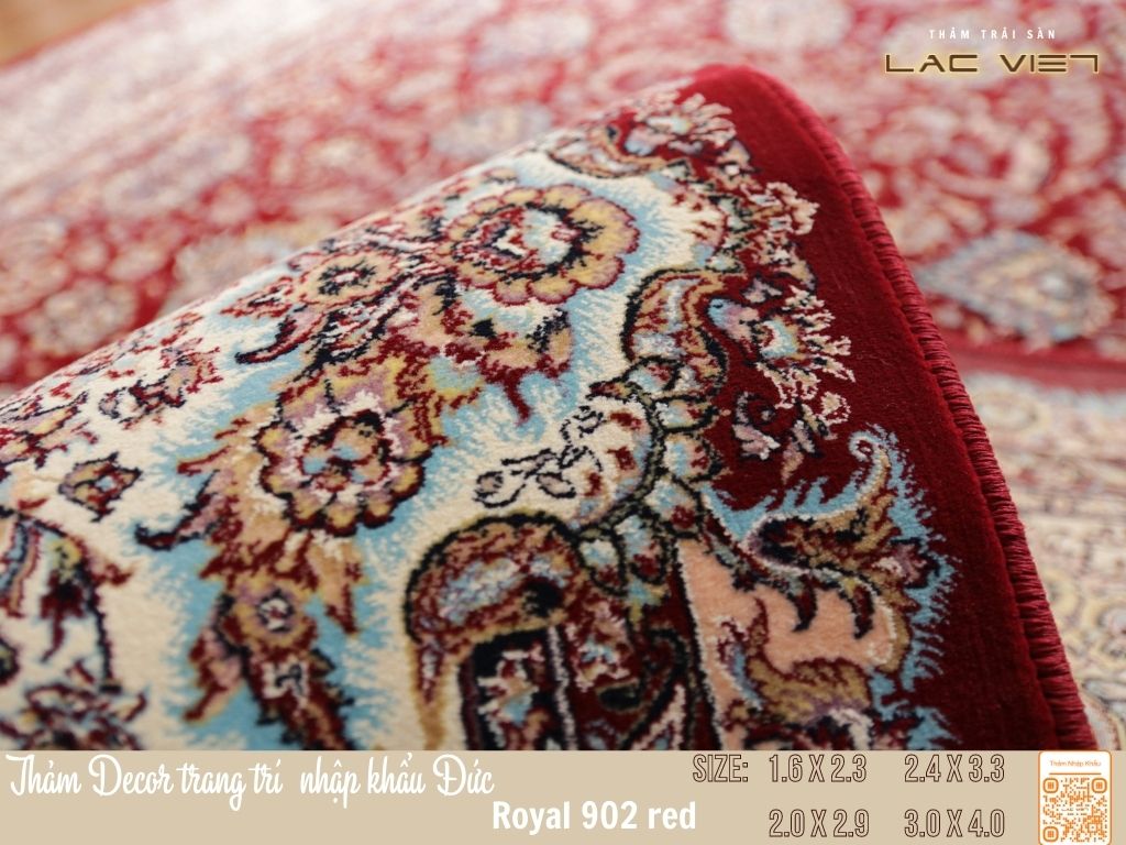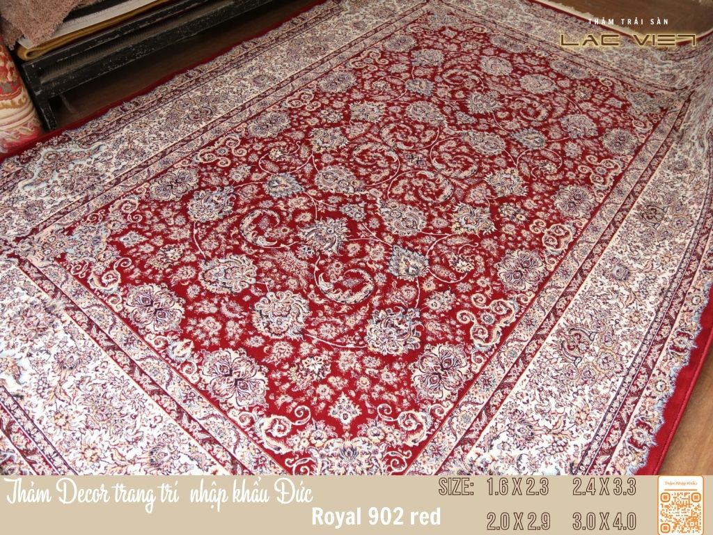 Mang phong cách sang trọng và đậm chất nghệ thuật, thảm decor nhập khẩu Đức Royal 902 Red là lựa chọn lý tưởng để nâng tầm thẩm mỹ cho ngôi nhà của bạn.
