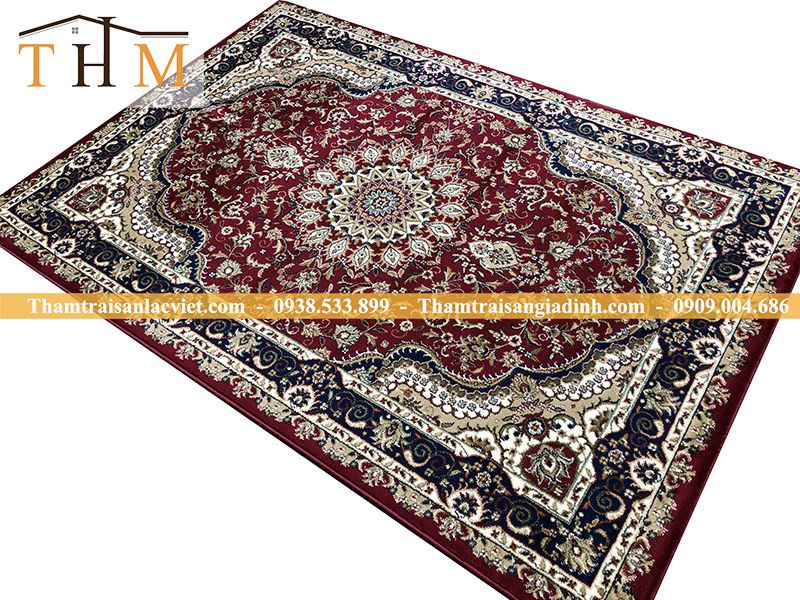 Thảm hoa văn cổ điển LV513 sử dụng màu trắng cho các chi tiết trên thảm trải sàn. Màu trắng thể hiện cho sự sang trọng nổi bật hơn hẳn trên hai gam màu đỏ - trắng. Tất cả được tạo nên qua nghệ thuật đối xứng với trung tâm là một đóa hoa bắt mắt.